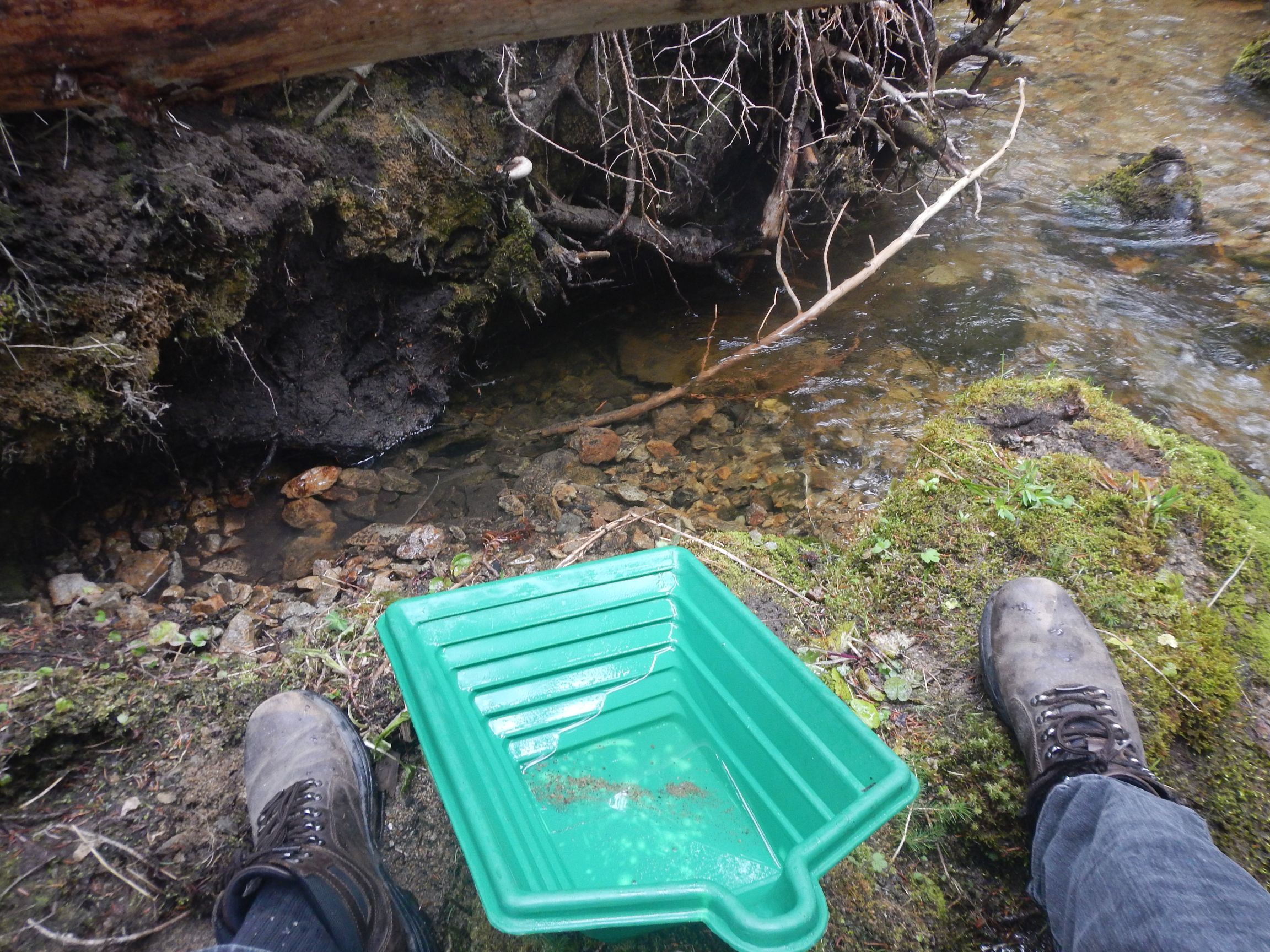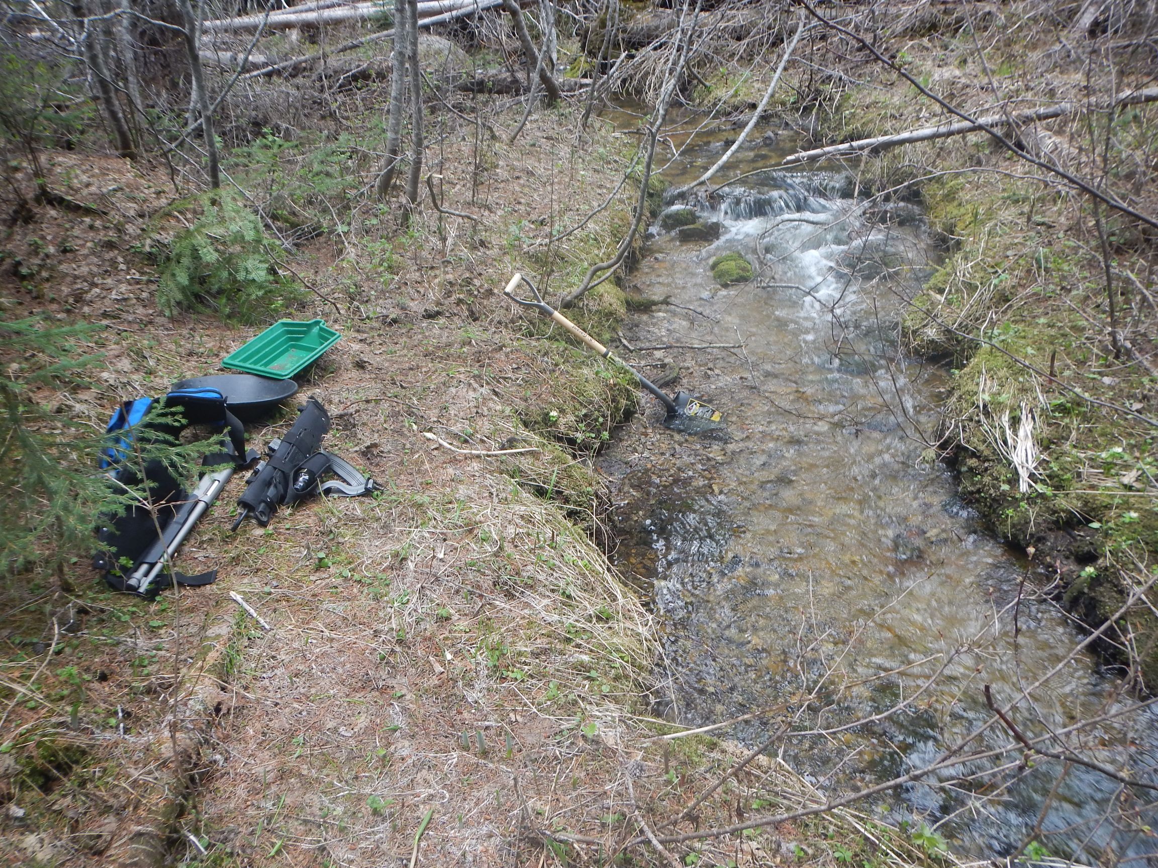 From Minfile 092HNE291: Placer gold has been recovered from several locations along North Trout Creek, 100 to 1300 metres above the creek’s confluence with Trout Creek. Three of the occurrences coincide with structural lineaments (Assessment Report 14989). Gold particles recovered from the stream’s gravels have an angular shape, indicating a source nearby (Assessment Report 17560). During the 1970’s and 1980’s, prospector Don Agur held numerous claims on lode showings in Siwash and North Trout Creeks. He also held placer claims on Siwash and North Trout Creeks, actively working the placer claims on North Trout Creek.